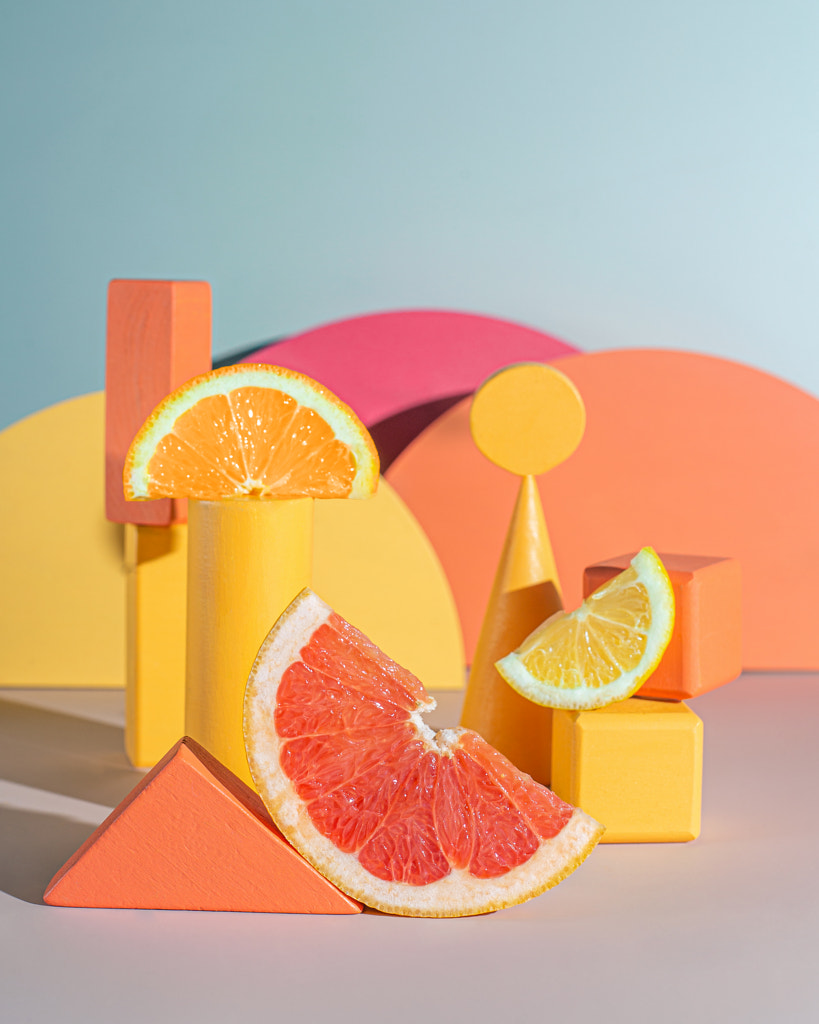 Choose props or backgrounds featuring these colors and/or their complements (yellow’s complement is purple, while teal’s is ruby red). Maybe you use a monochrome color palette in your next still life shoot, or you experiment with the color wheel. Keep in mind that many colors also have symbolic weight; green, for instance, evokes ideas relating to sustainability and the environment, while blue can convey security or serenity.