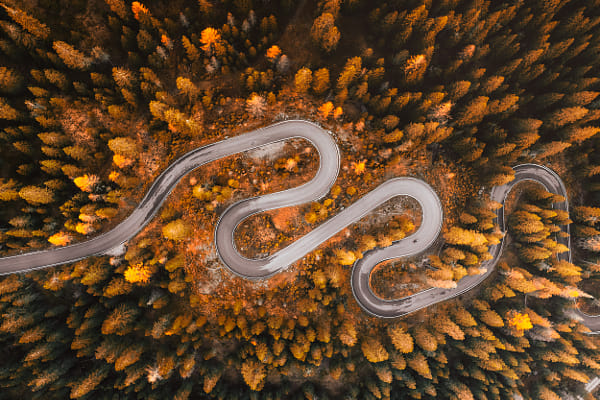 A powerful autumn foliage photo depends heavily on composition. Consider how to use leading lines, patterns, and framing to guide the viewer’s eye through the scene.